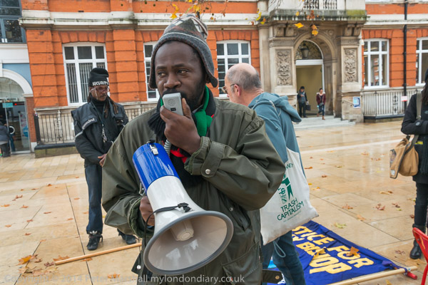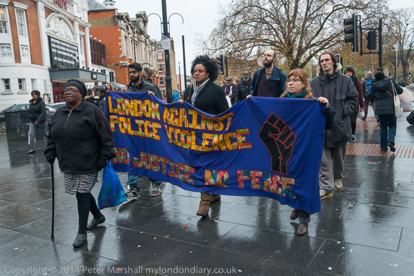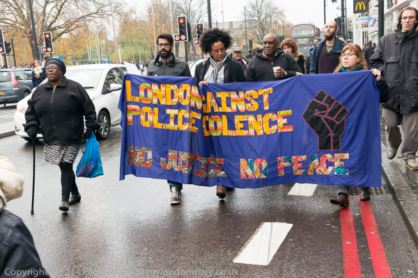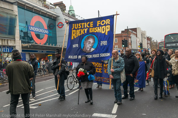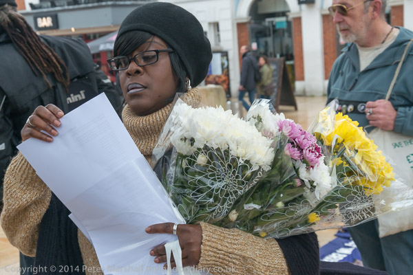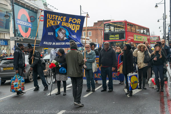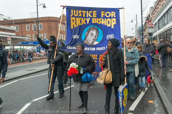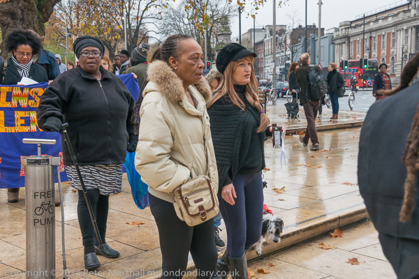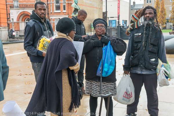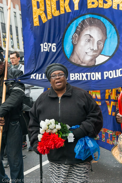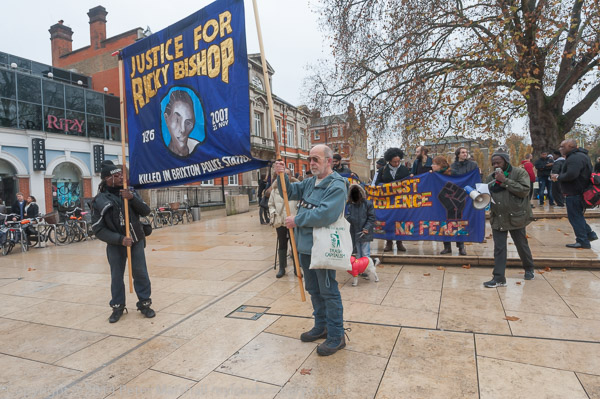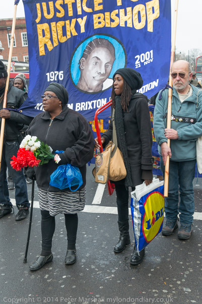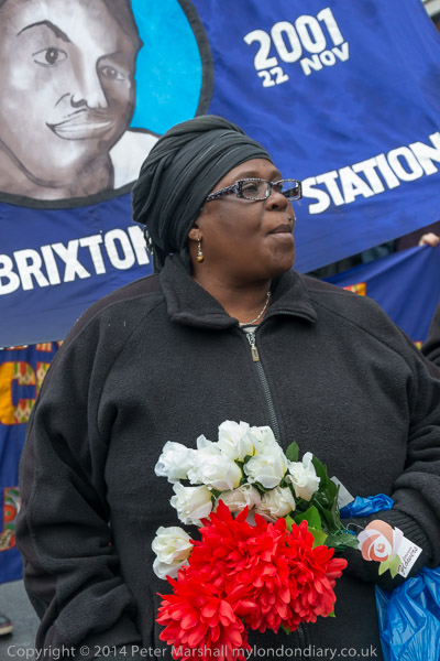 People gather in Windrush Square with Doreen Bishop for the 13th anniversary of her son's killing by police
