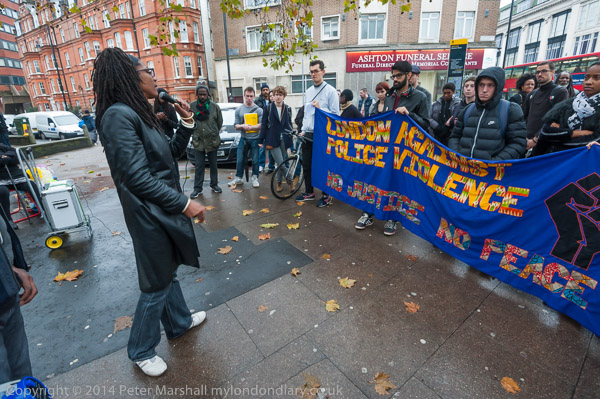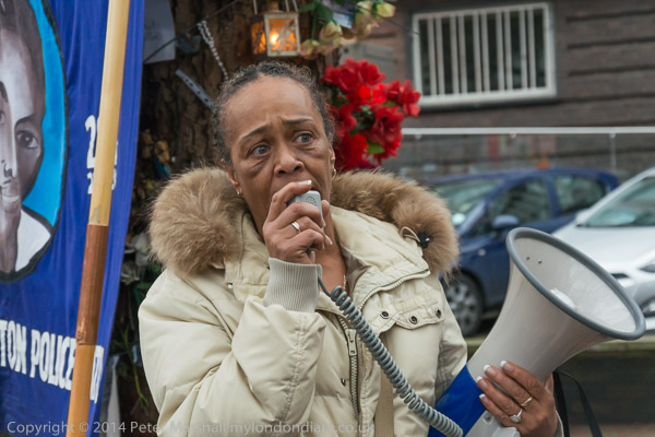 Marcia turns and shouts back angrily. Police killed her brother - using unnecessary and excessive force according to the inquest jury.