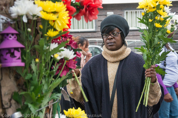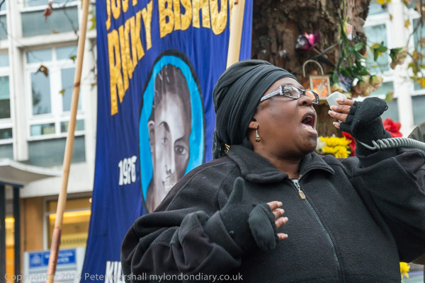 People stand in silence remembering Ricky Bishop and others killed by police at Brixton Police Station