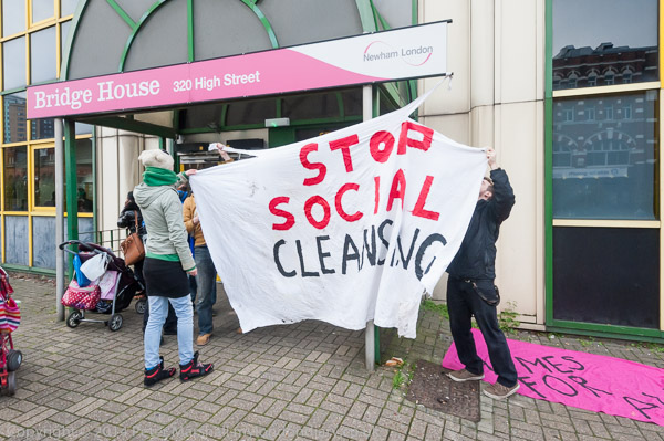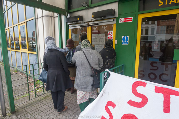 People arrive for interviews and find the door is locked. Someone from Focus E15 eventually gets those inside