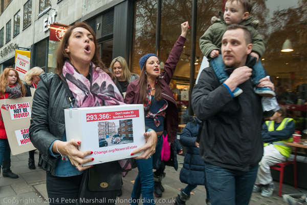 New Era tenants carry boxes containing the petition with 293,366 signatures