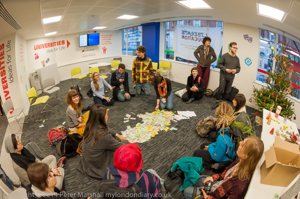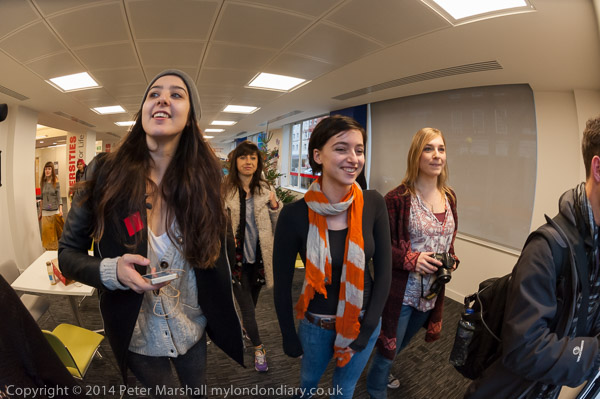 before going back to the discussion. Then there is more noice,as the UCL students try to get in through the main door