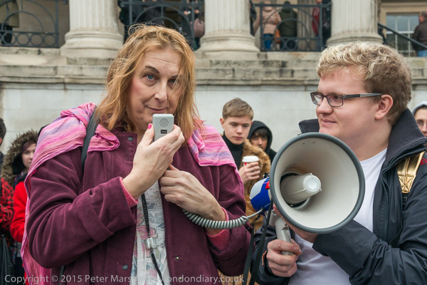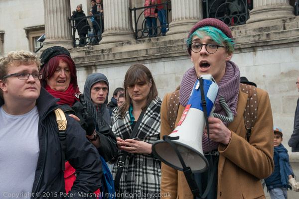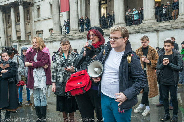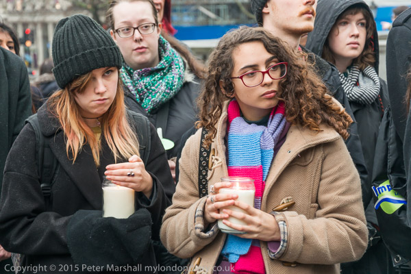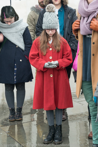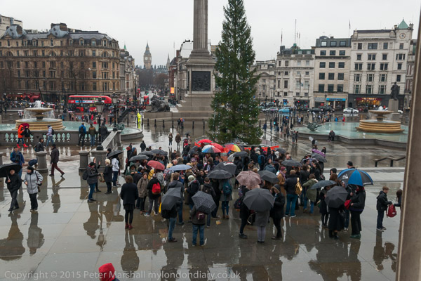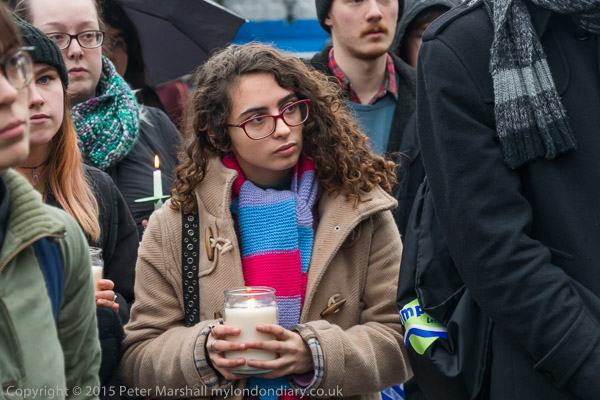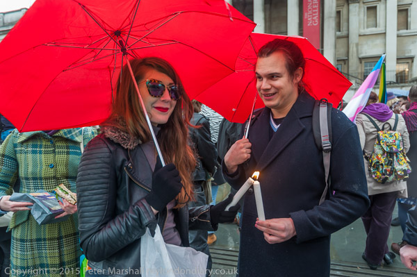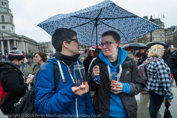 It was raining a little as people gathered for the vigil in Trafalgar Square, which had been arranged at short notice