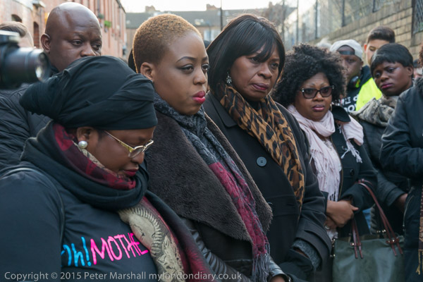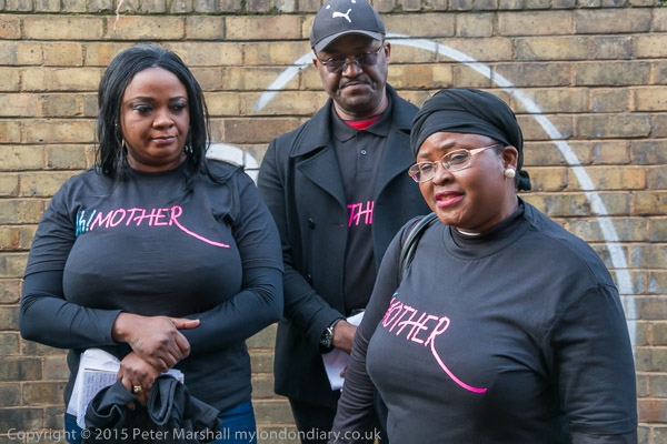 Women, including Joel Adesina's mother (right) and sister listen to speeches
