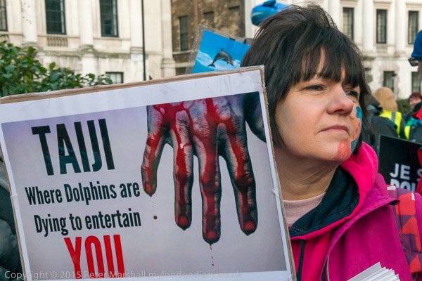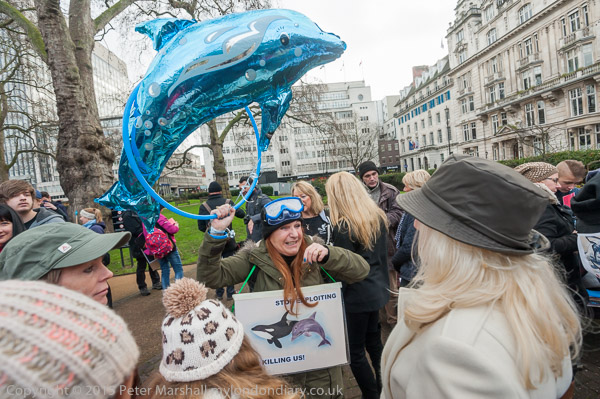 Advertised as a carnival march, many had tdressed in dolphin-related costumes or made placards with dolphins on them