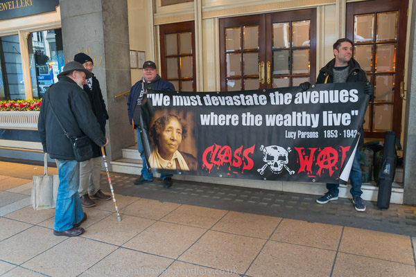 The banner has a quote from US anachist and treade unionist Lucy Parson, 1853-1942