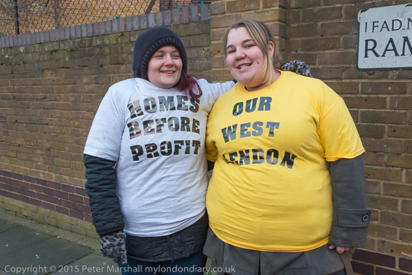 Sam Middleton and Jasmine Stone of Focus 15 wearing Our West Hendon 'Homes Before Profit' t-shirts