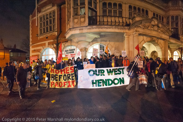 The OUr West Hendon march gets close to Hendon Town Hall