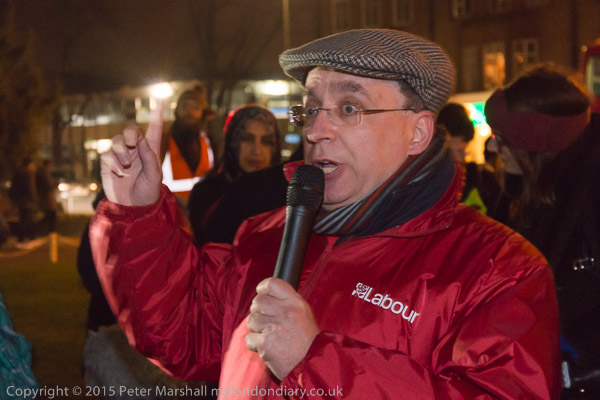 a photo opportunity in the dark outside Hendon Town Hall