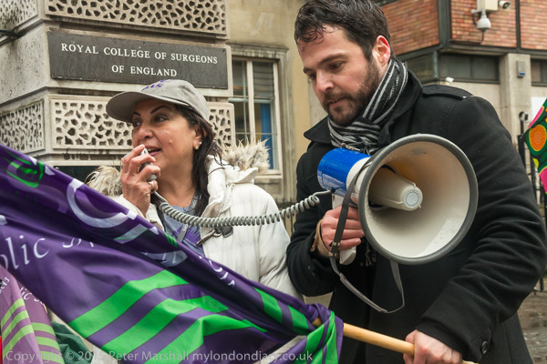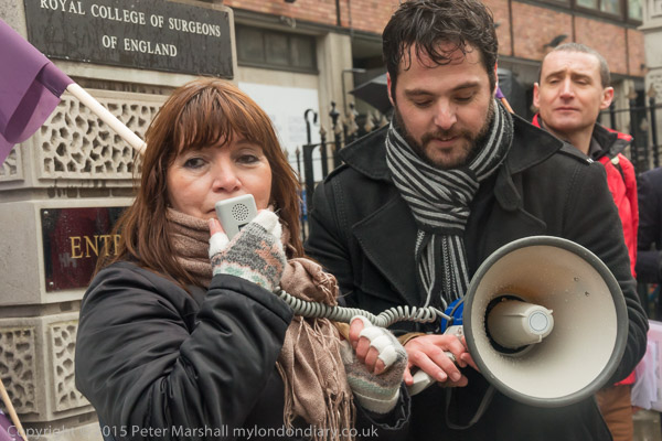 She stands in front of one of the gates to the Royal College of Surgeons of England