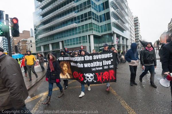 Class War had come to near the front of the march and swung away from it at Whitechapel High St to protest