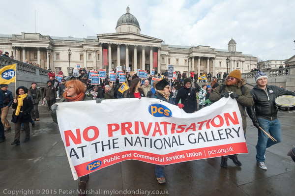 Trafalgar Square and DCMS, Whitehall, London. Thur 5 Feb 2015