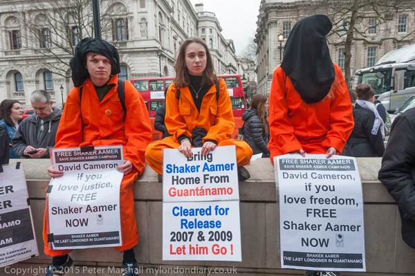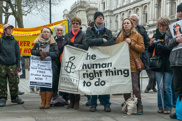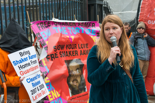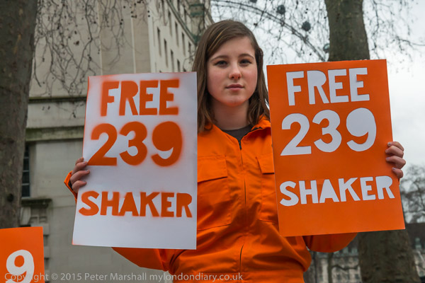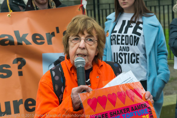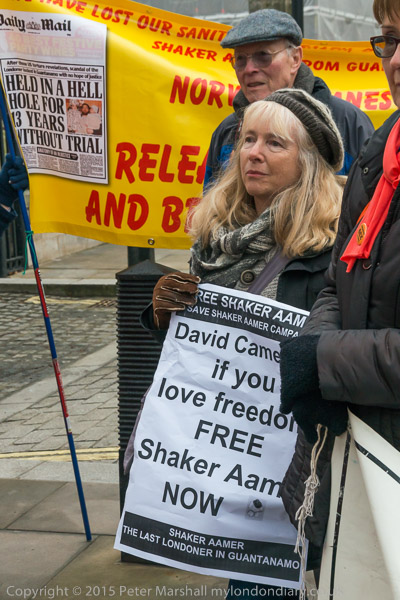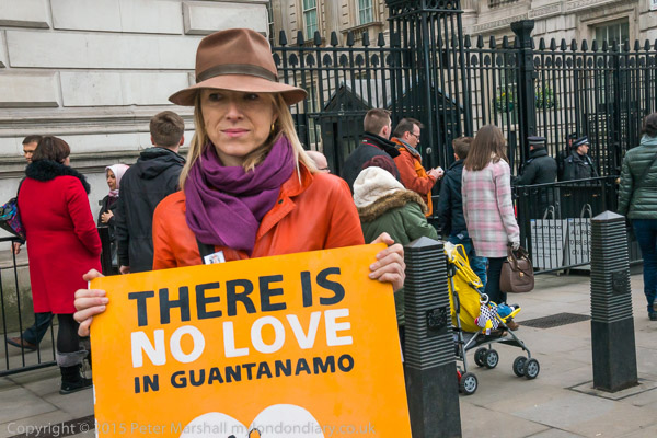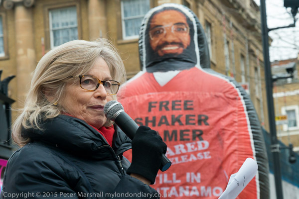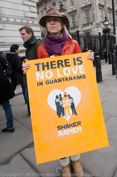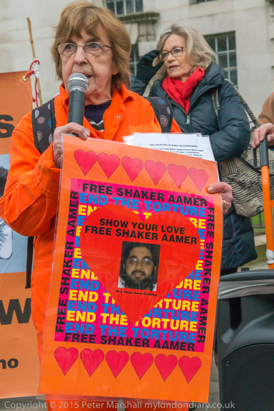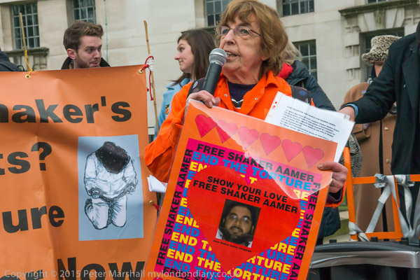 Joy Hurcombe, chair of the Save Shaker Aamer Campaign and a Valentine for David Cameron asking him to 'Show your Love - Free Shaker Aamer'