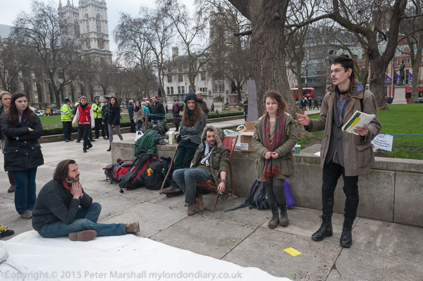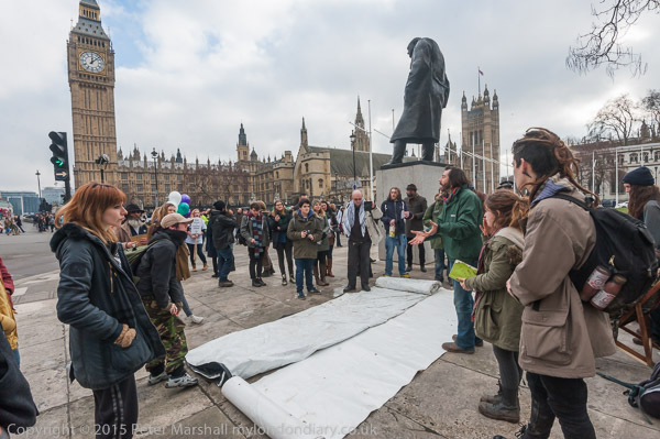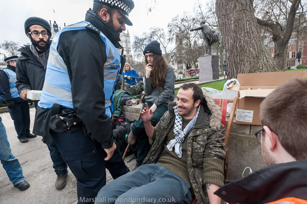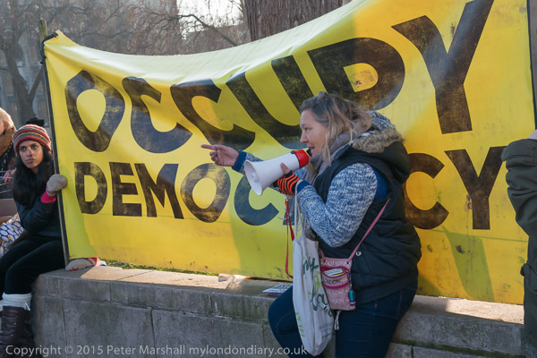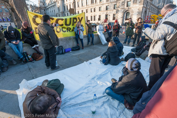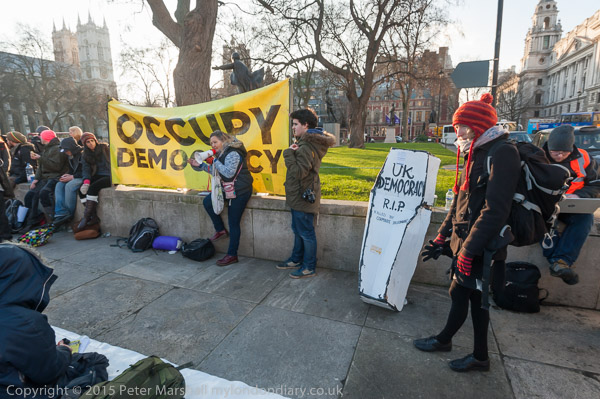 The coffin 'UK Democracy R.I.P. Killed by Corporate Billionaires' police arrested with Donnachadh McCarthy