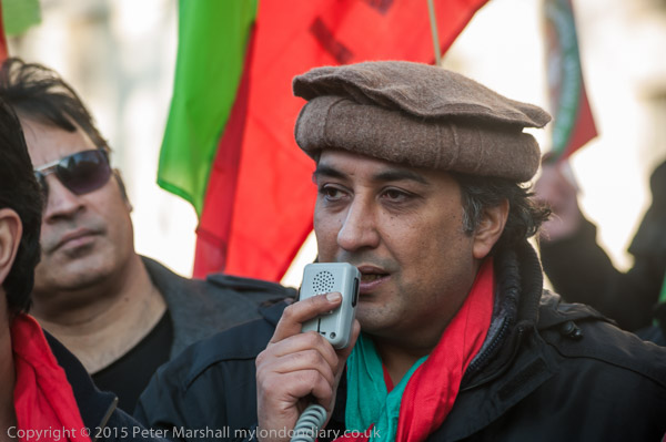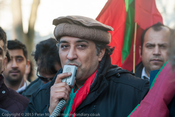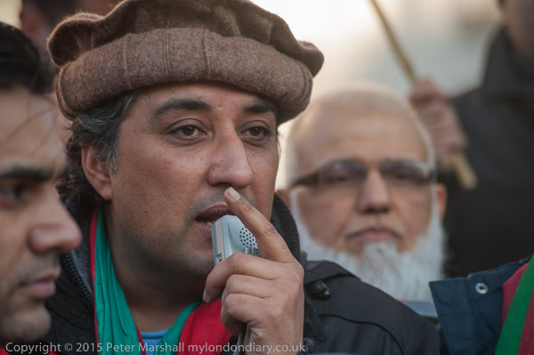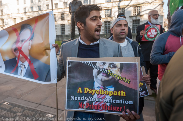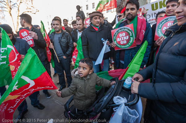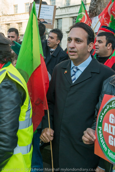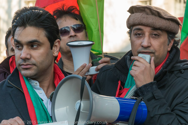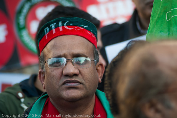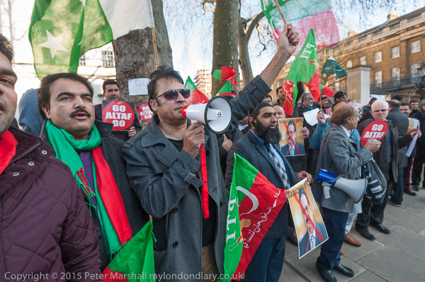 People arrive for the protest at Downing St by Pakistani PTI party calling on the UK government to act against