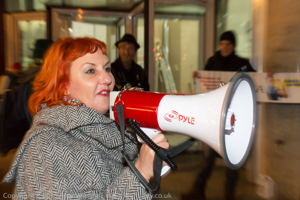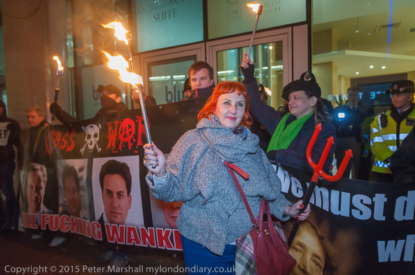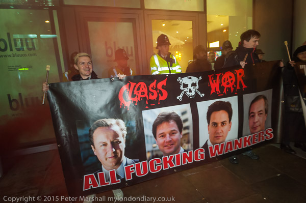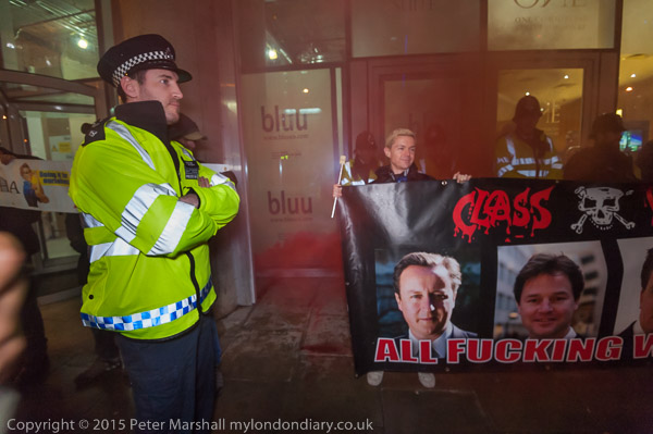 and the protest continued, with the 'Party Leaders' banner in front of the rich door, guarded by severla officers
