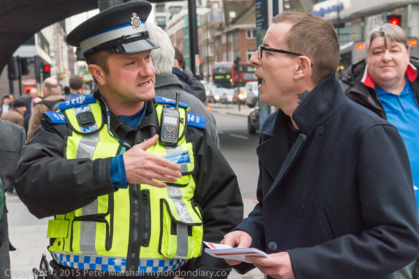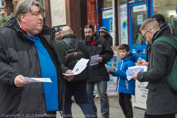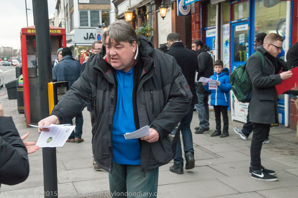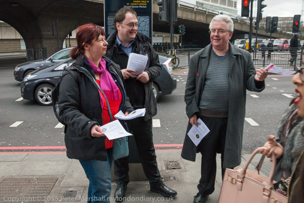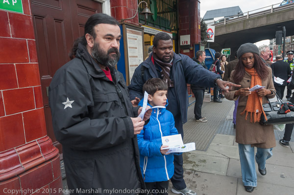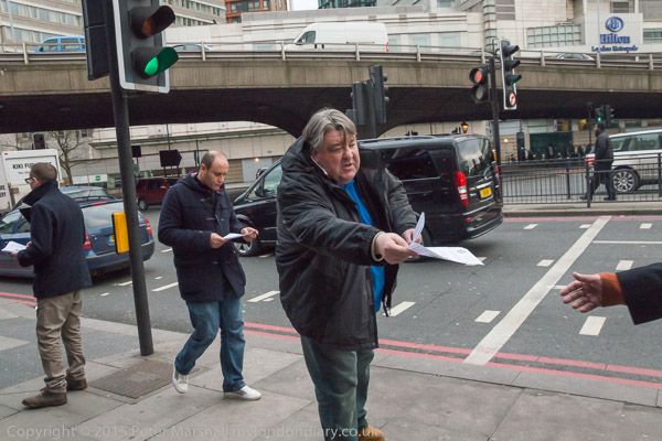and others came to stand with it, while half a dozen more continued to hand out flyers
