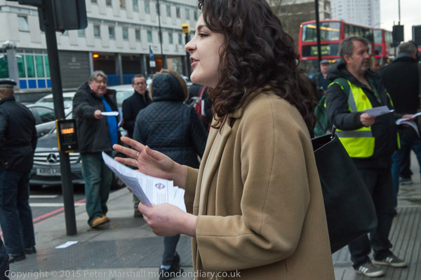 Many of those poassing too k the flyers about the closure and some stopped to talk with the proesters
