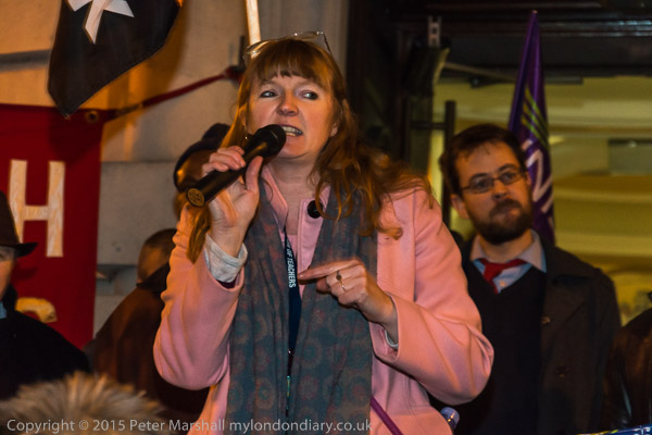 Sara Tomlinson of Lambeth Teachers' Association (NUT) who chaired the rally