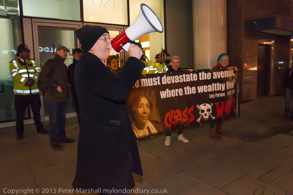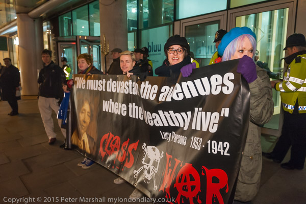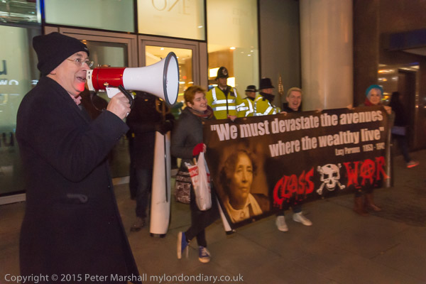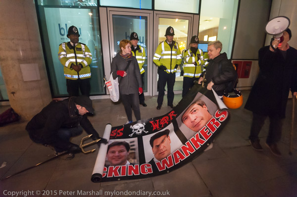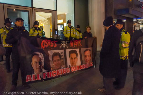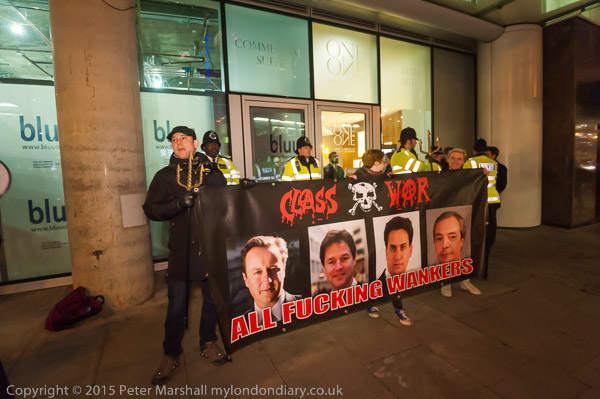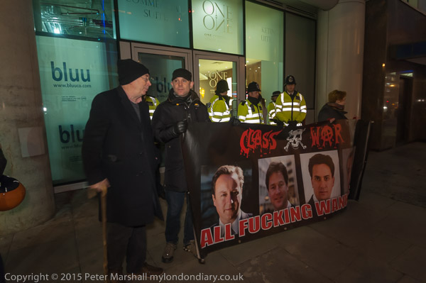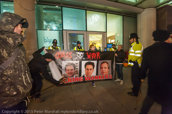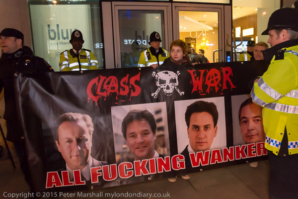 Class War brought out the 'Political Leaders' banner in front of the 'rich' door