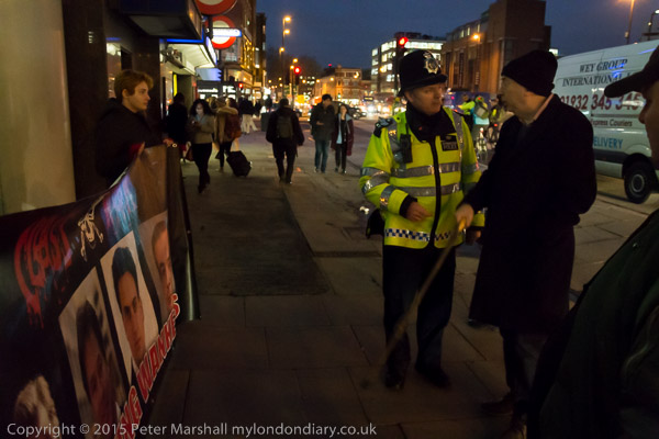 The banner stays on display while the police try to persuade someone they are offended. Most people are amused