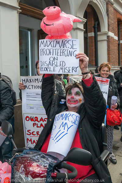 Paul Peters holds a poster 'Maximarse Kiss My Arse!!!'