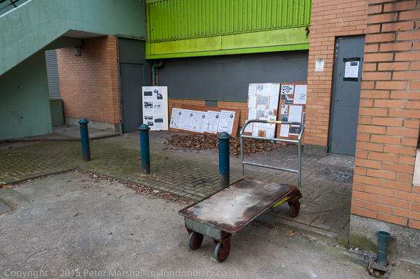 A trolley outside the occupied area at the base of Chiltern. This was offices and community space, not residential