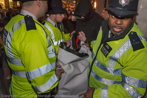 And the police grab hold of the banner, trying to pull it out of the hands of those holding it