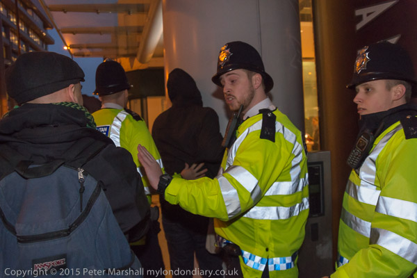 Constable Reihill tells each of those holding the banner that they are committing an offence