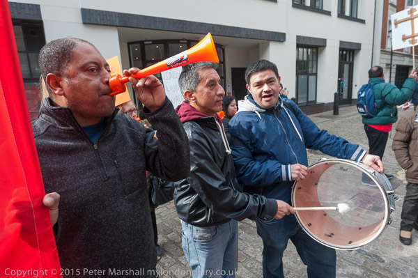 Jason Moyer-Lee arrives with banners, flags drums and support