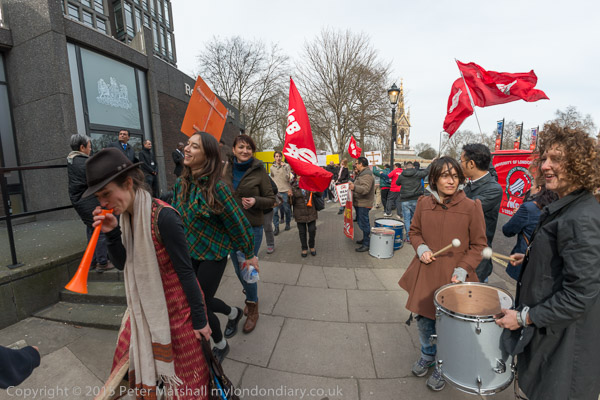 It sounded even louder when everyone had marched around to an almost enclosed yard at the rear of the building