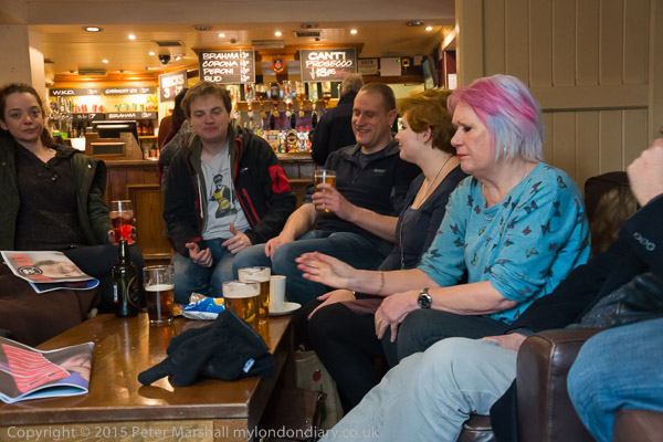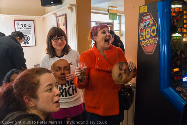 People drink a toast to  Class War candidate for Chingford & Woodford Green Lisa McKenzie