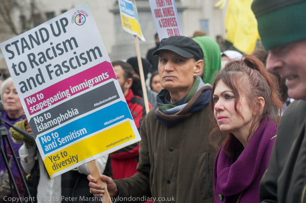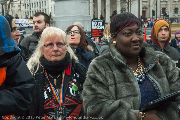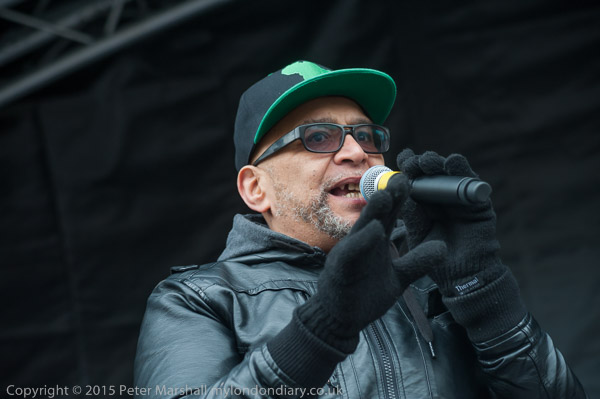 Lee Jasper holds up a poster with his response to Trevor Phillips