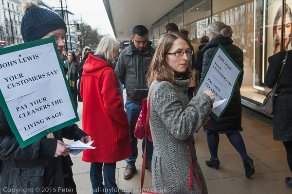 John Lewis customers were protesting to support the cleaners who are campaigning for a living wage