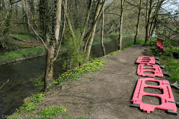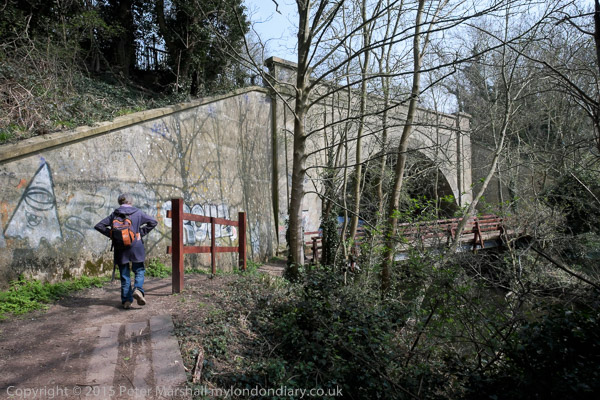 Just below the road bridge is this structure - like a facade of a bridge. It could have been built to stop animals walking downstream