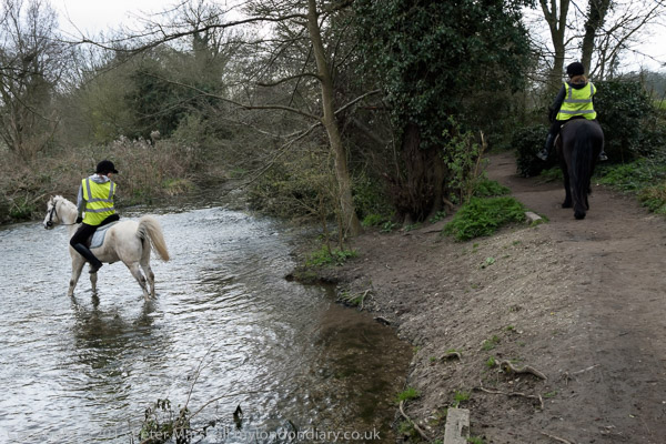 The footpath downriver from Frank's Lane has a 'No Horseriding' sign