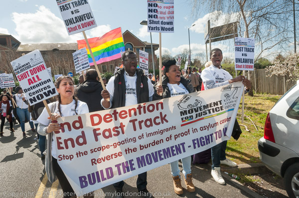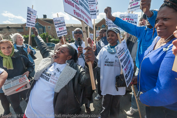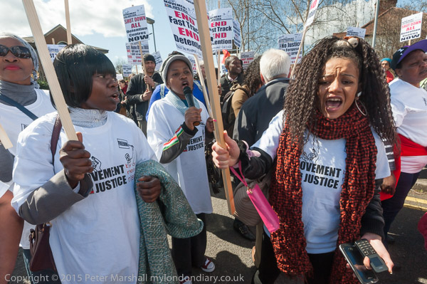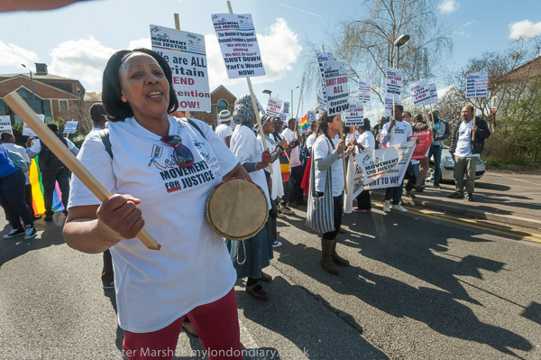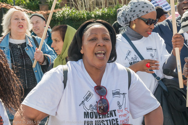 and get out placards and banners. The protest is organised by Movement for Justice
