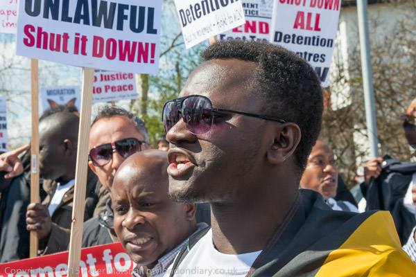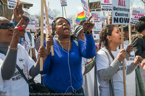 The protesters start to make a lot of noise, calling for an end to detention