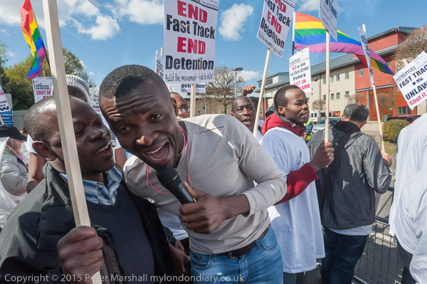 The chanting increases in volume when the protesters are in the pen