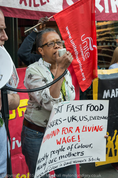 Victimised National Gallery PCS rep Candy Udwin speaking at the protest