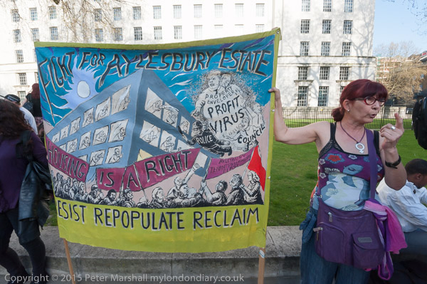'Fight for Aylesbury Estate' with Aysen Dennis holding the banner