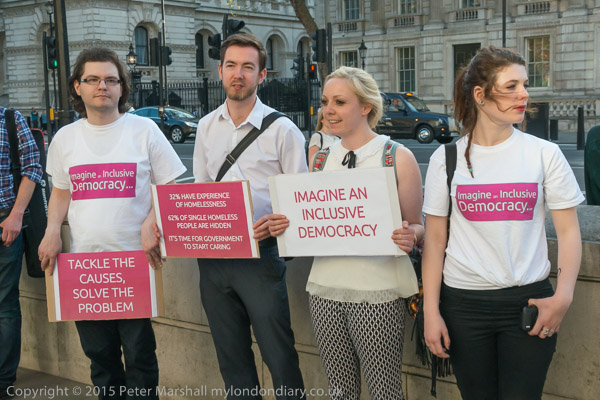People gathered opposite Downing St in a protest to support the homeless, calling for 'No More Deaths on our Streets'