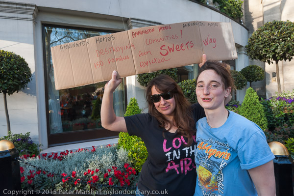 Sweets Way protesters against the demolition of homes by Annington Homes who will replace them by luxury flats