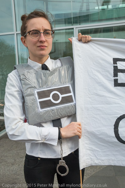 The logo is meant to resemble an ID card with a chip (I think). The protesters came with handcuffs