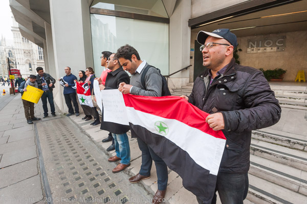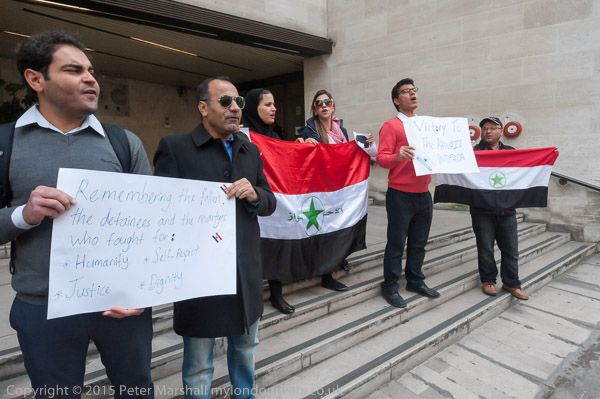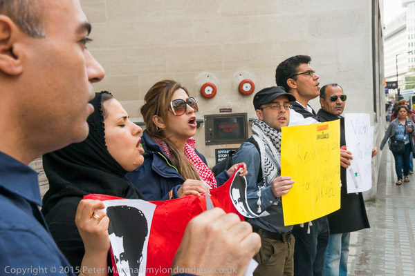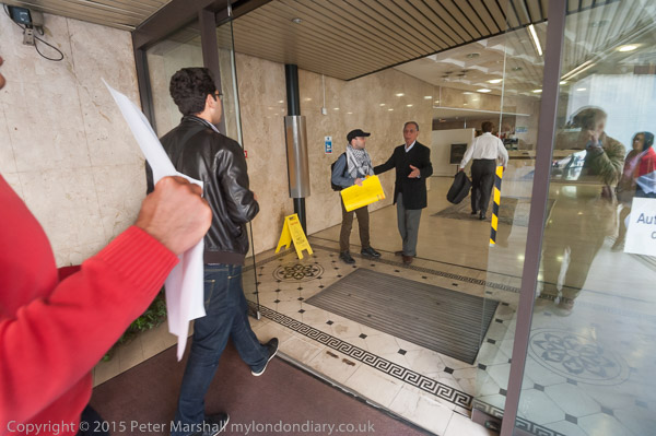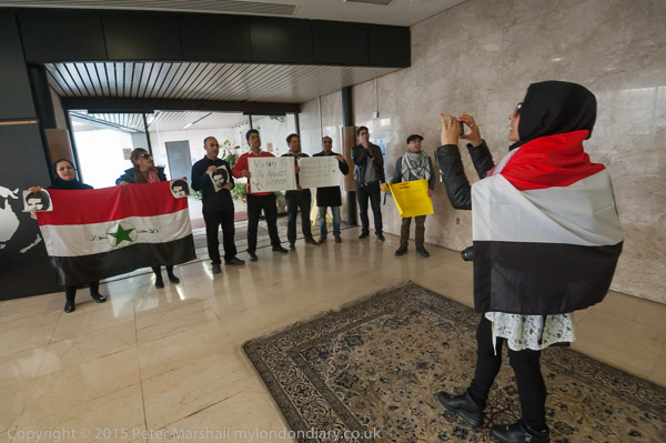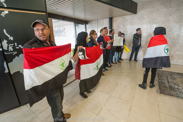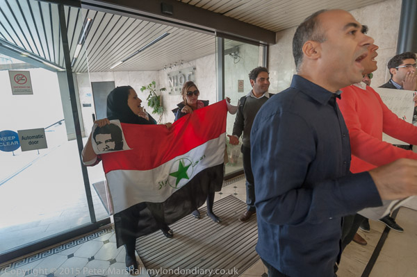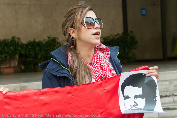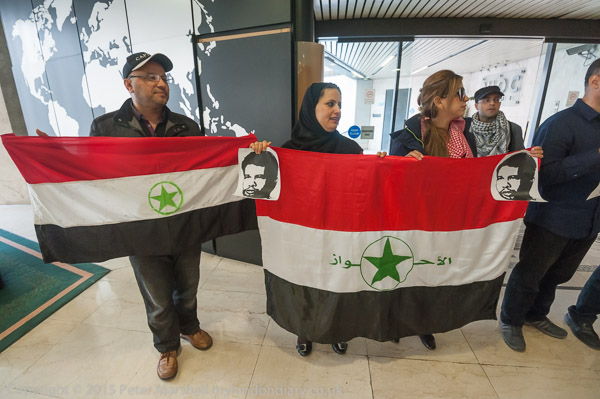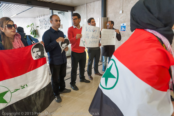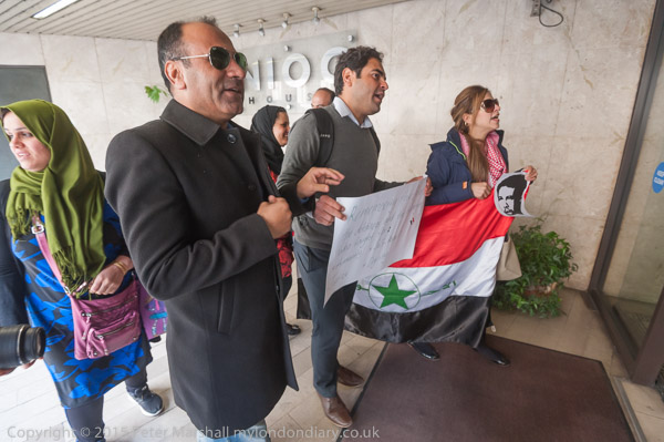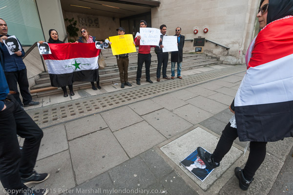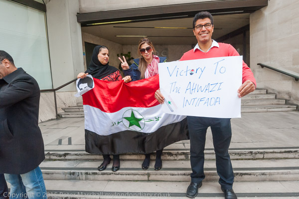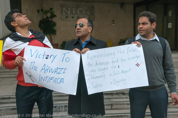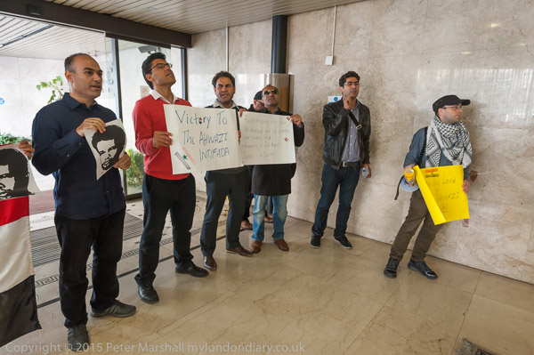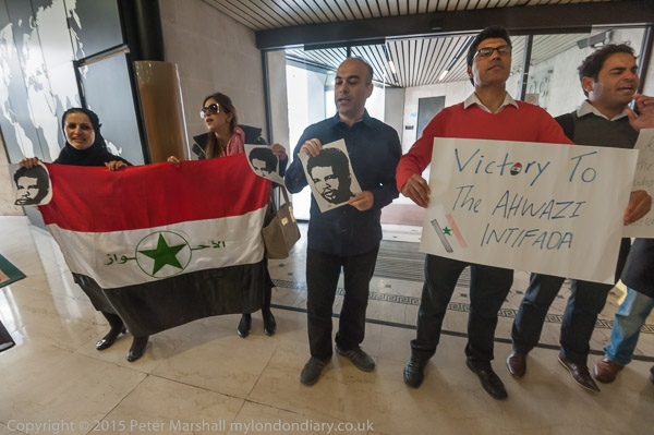 Ahwazi Arabs protest outside the meeting where the UK Chargé d' Affaires to Iran was urging closer links with