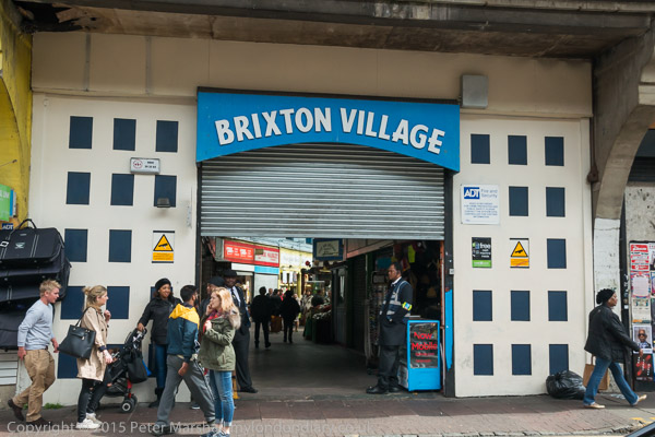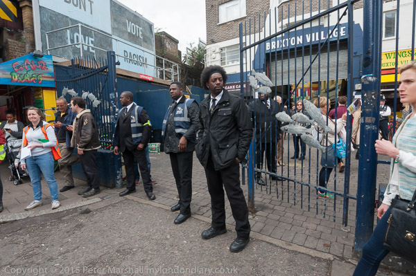 Extra security on the gates of Brixton Village - and there were plenty of police around