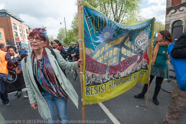 The banner I had seen being made the previous day on the Aylesbury Estate