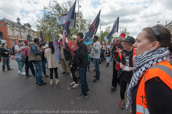 On the corner of Windrush Square, activists prepare to march