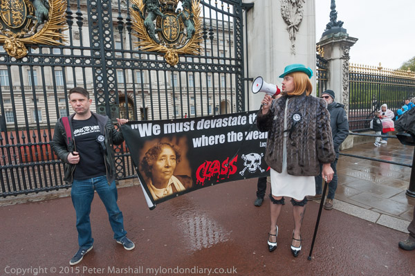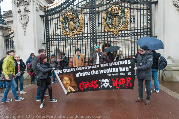 Class War bring up the Lucy Parsons banner "We must devastate the avenues where the wealthy live'