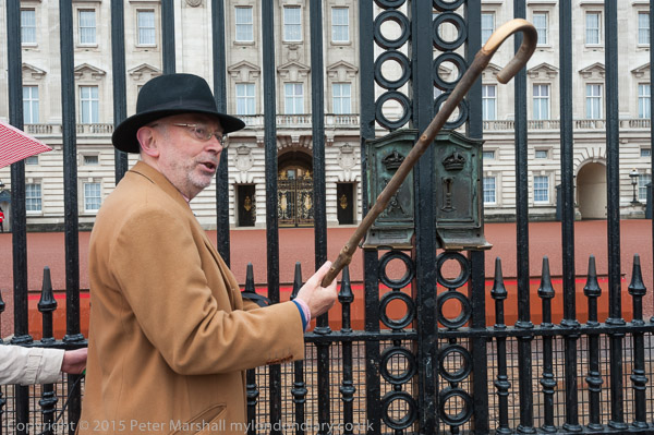 Ian Bone bangs on the gates with his walking stick to demand entry